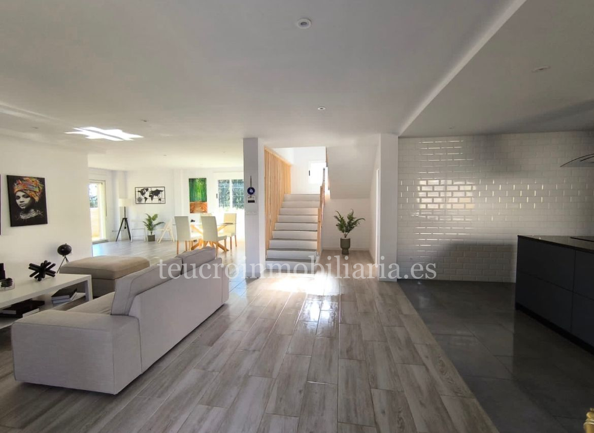 En la planta baja, te recibe un amplio salón comedor que invita a relajarse y disfrutar de momentos en familia. La cocina moderna y abierta está completamente amueblada, perfecta para los amantes de la gastronomía. Además, cuenta con un dormitorio y un cuarto de baño, lo que proporciona comodidad y funcionalidad. En la primera planta, encontrarás cuatro dormitorios amplios y dos cuartos de baño, uno de ellos en suite, ideal para mayor privacidad. Desde una de las habitaciones, se accede a una fantástica terraza donde disfrutar del aire libre y las vistas.